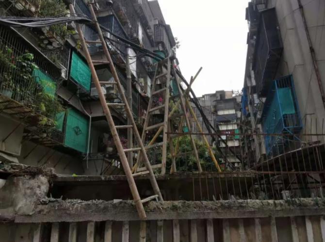 这些竹梯,时间久了下面就会腐烂,如果腐烂了,接下来台风多发季又要来了,台风一来,风大了,万一真的掉下来了,后果不堪设想,里面就住了几百户。